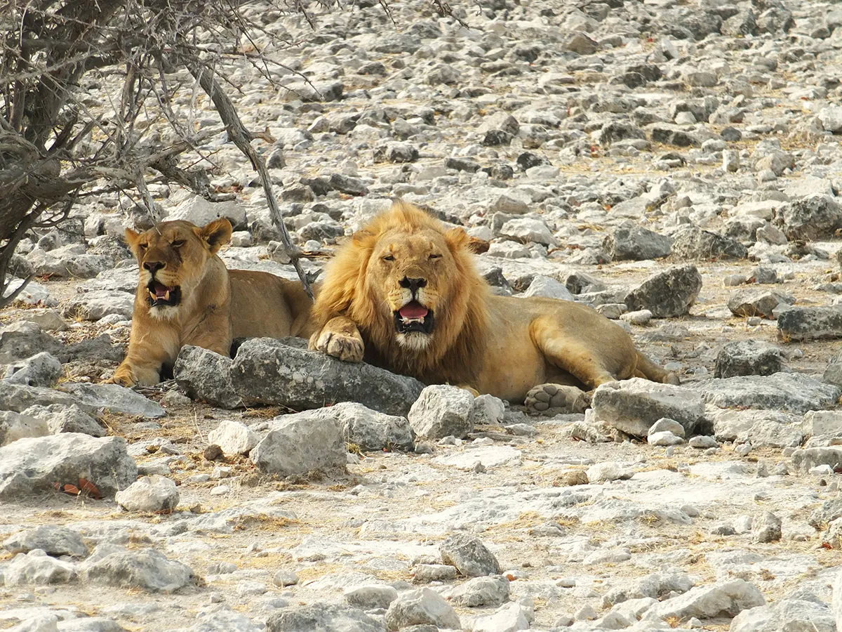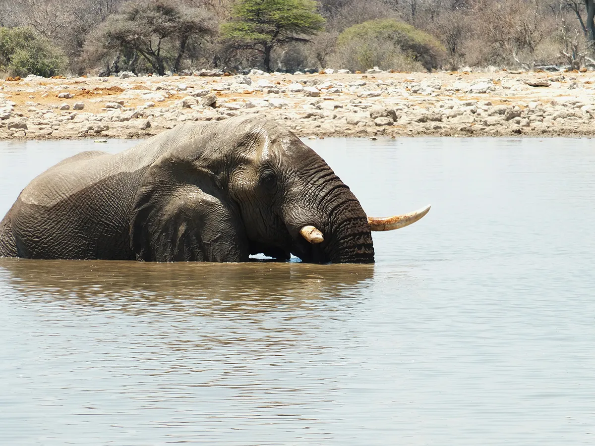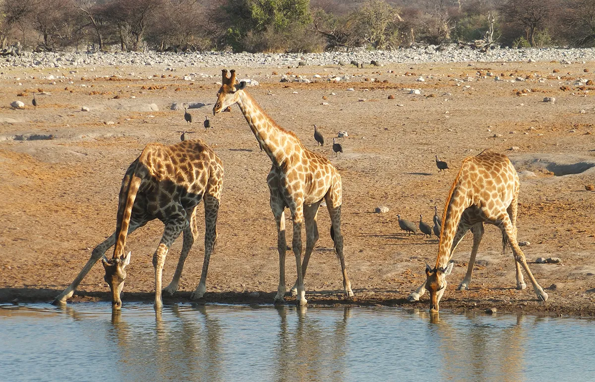 Los pozos de agua artificiales (waterholes) distribuidos por el parque crean anfiteatros naturales donde convergen todas las especies. Okaukuejo, Halali y Namutoni no solo son los campamentos principales del parque, sino también los nombres de algunos de los pozos más productivos para la observación de fauna.