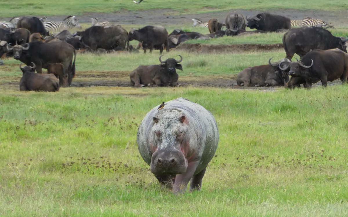 La población de rinocerontes negros del cráter representa una de las últimas poblaciones viables de esta especie críticamente amenazada en Tanzania, con aproximadamente 30-40 individuos cuidadosamente monitoreados. Los hipopótamos del cráter son particularmente accesibles para observación, ya que el lago Magadi y las pozas permanentes los mantienen concentrados en áreas predecibles.