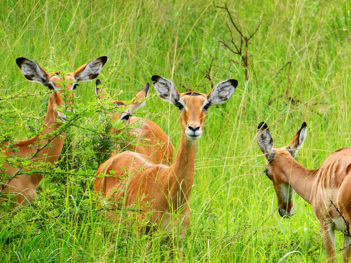 Los safaris clásicos en vehículo 4×4 se centran en Queen Elizabeth y Murchison Falls, con game drives matutinos y vespertinos, complementados con navegaciones fluviales únicas.
