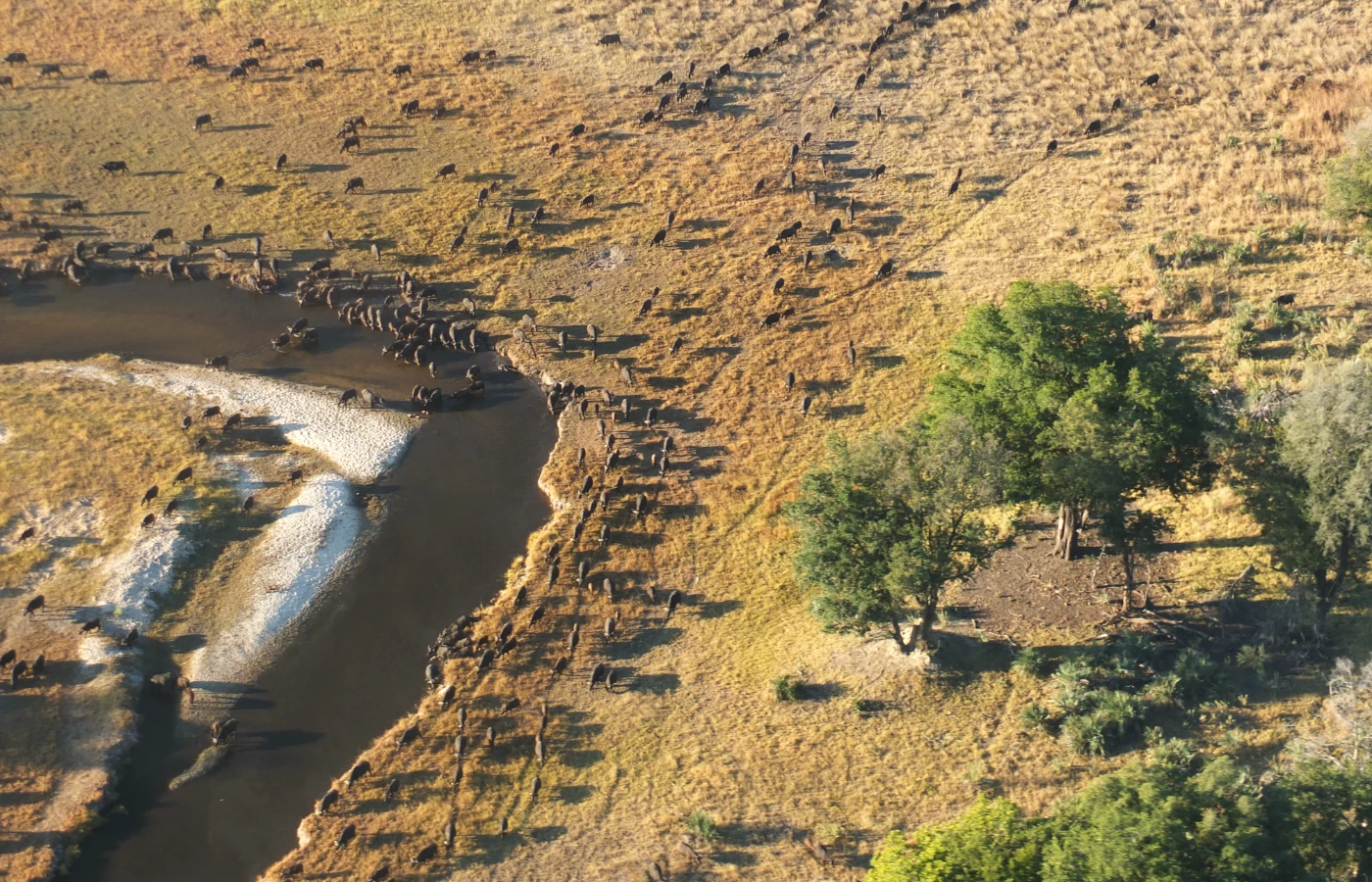 Desde la perspectiva aérea, los patrones de comportamiento animal revelan secretos invisibles desde tierra. Las manadas de ñus forman ríos vivientes durante la migración, los elefantes crean senderos perfectamente organizados hacia fuentes de agua, y los depredadores pueden observarse acechando con estrategias que solo se aprecian desde arriba. Los hipopótamos aparecen como pequeñas islas rosáceas en los meandros de los ríos, mientras que las jirafas proyectan sombras geométricas perfectas sobre la sabana dorada.